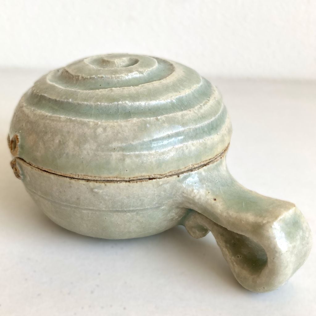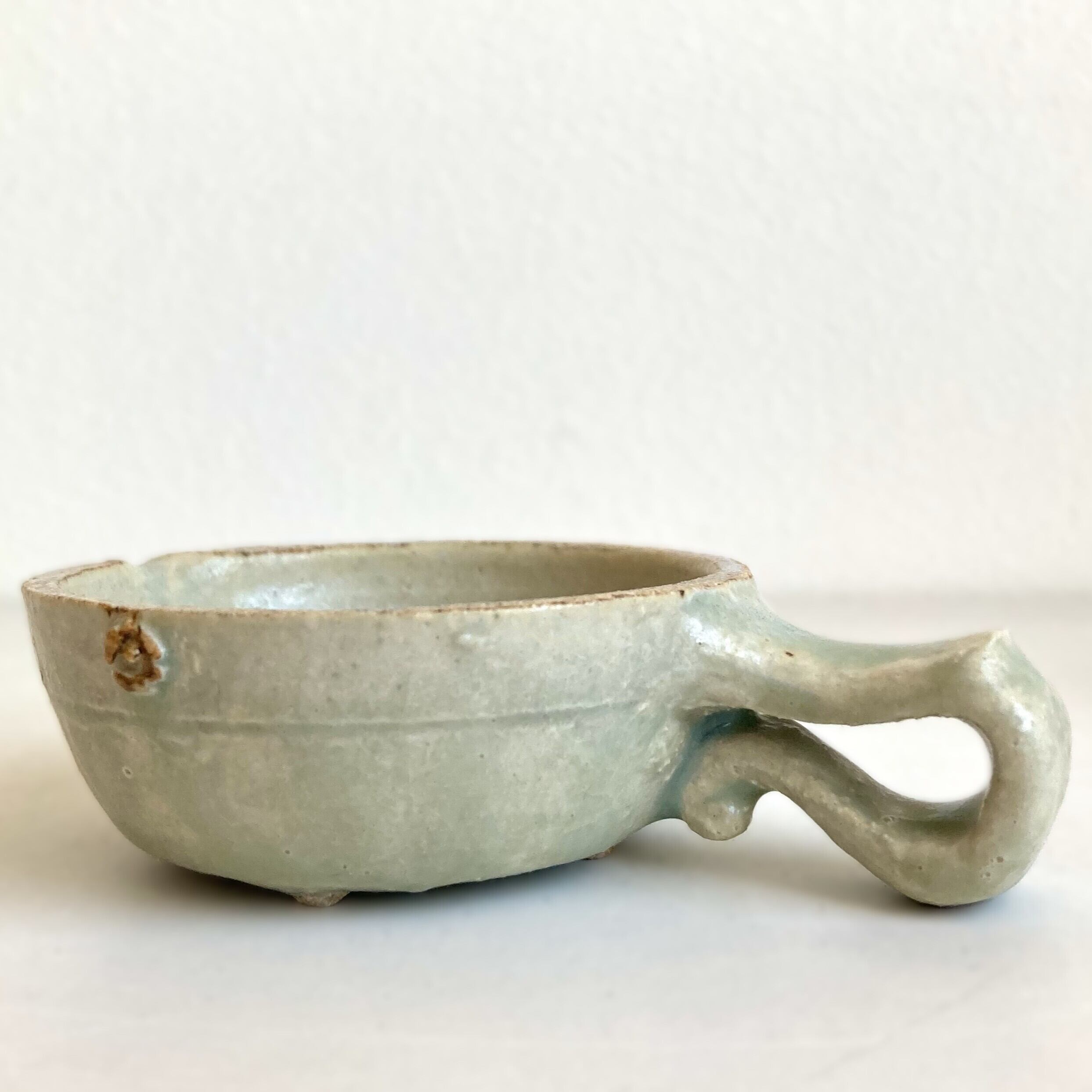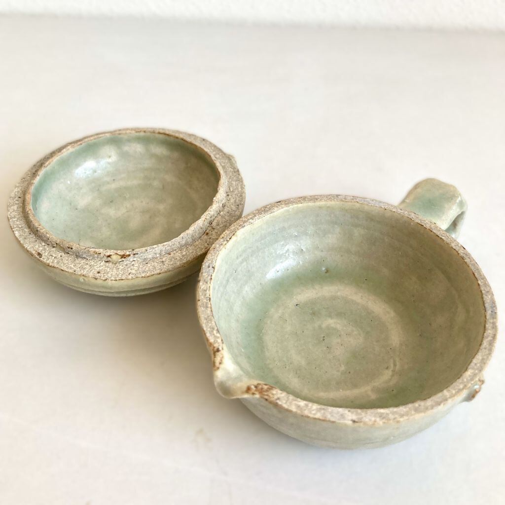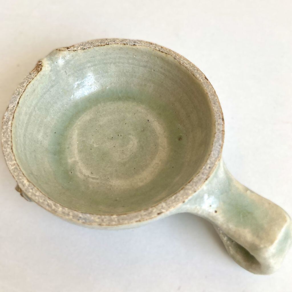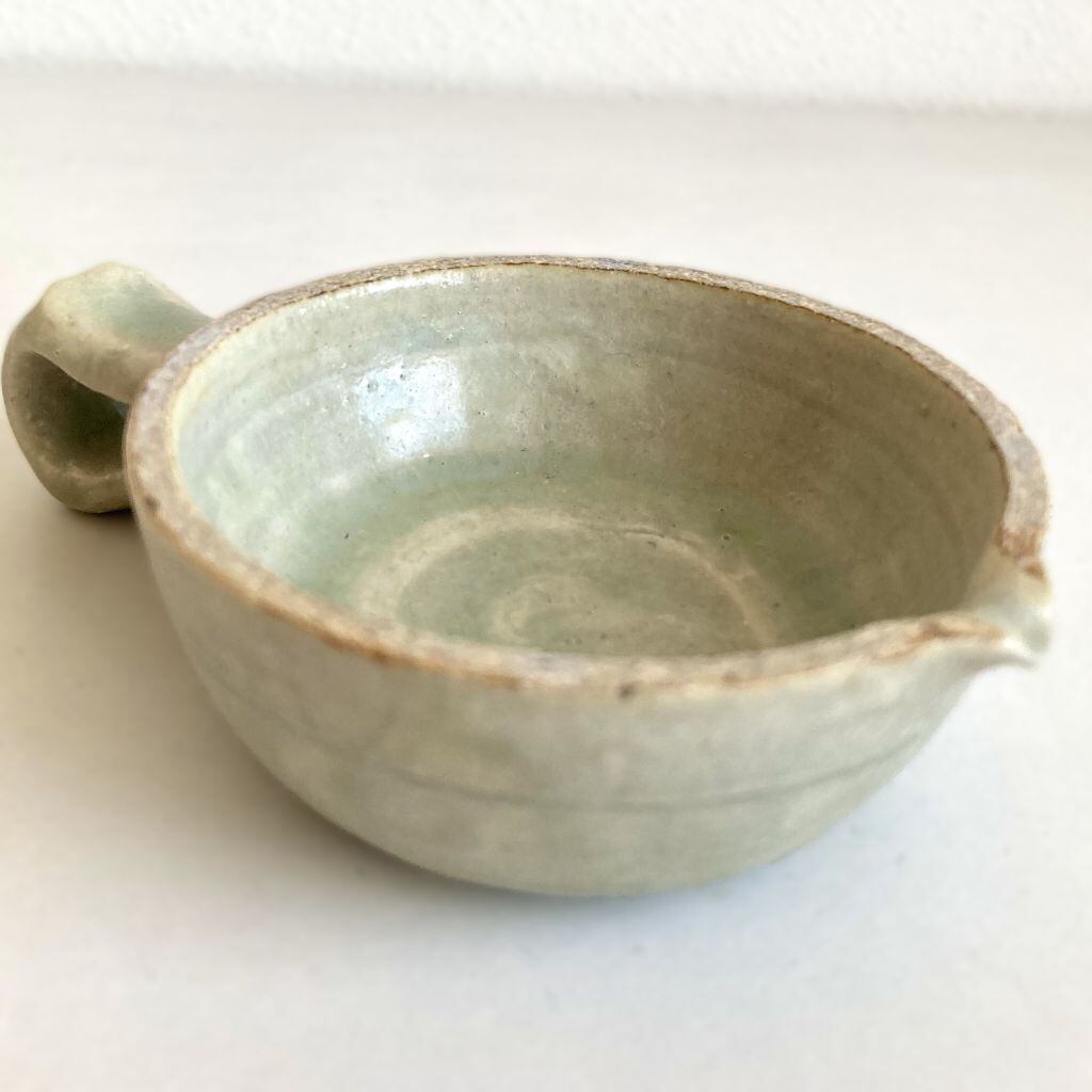 注ぎ口と共に、筆置きとしても使える取っ手が付いています。取っ手の小さな突起とカーブは、筆が転がるのを優しく支えてくれます。容器の中はシンプルに作られており、お手入れも簡単です。