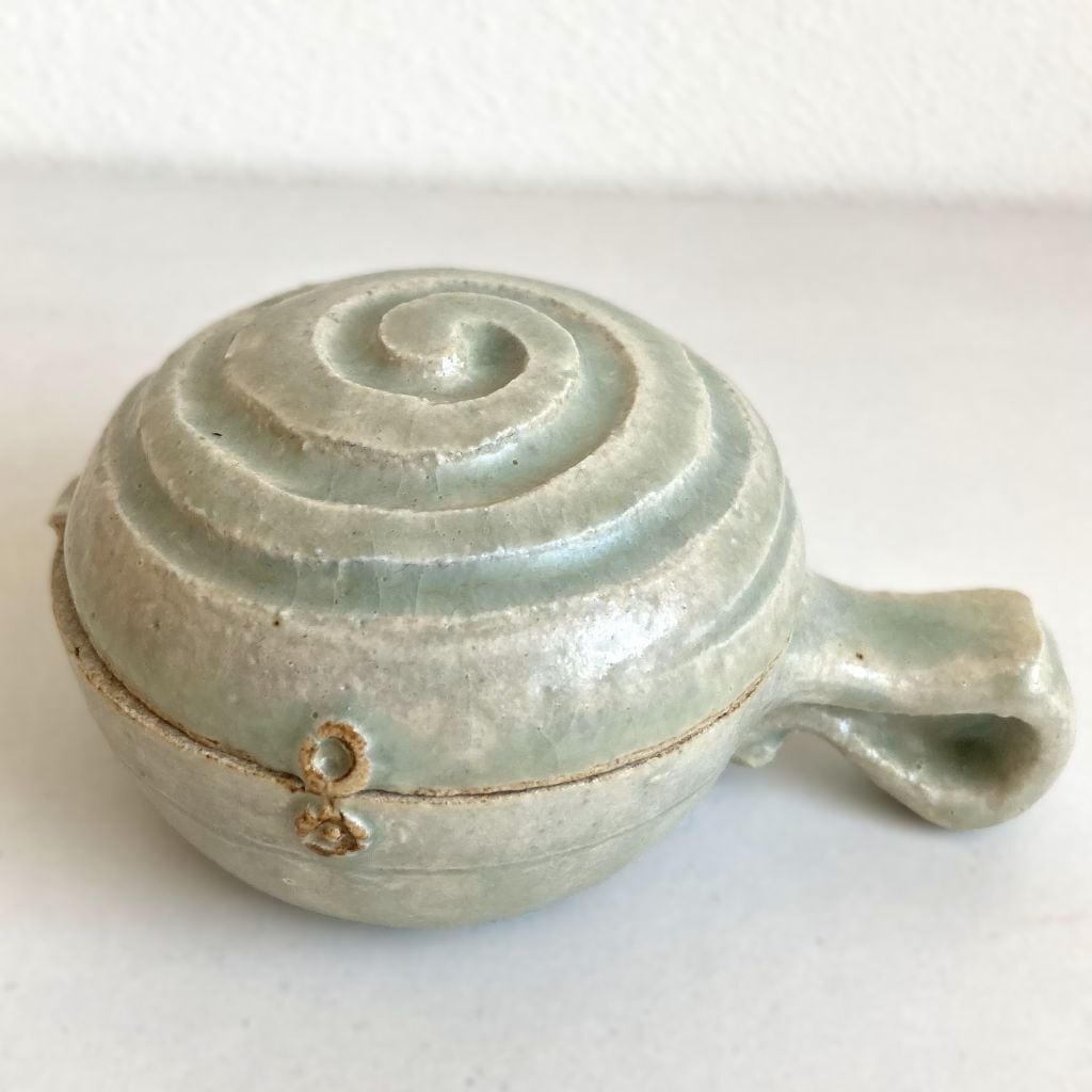 美しい渦巻き模様が蓋に施してある楽しい墨池です。
