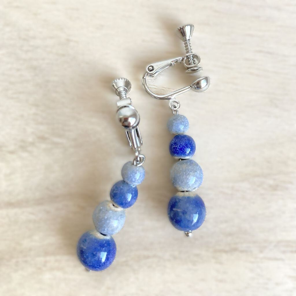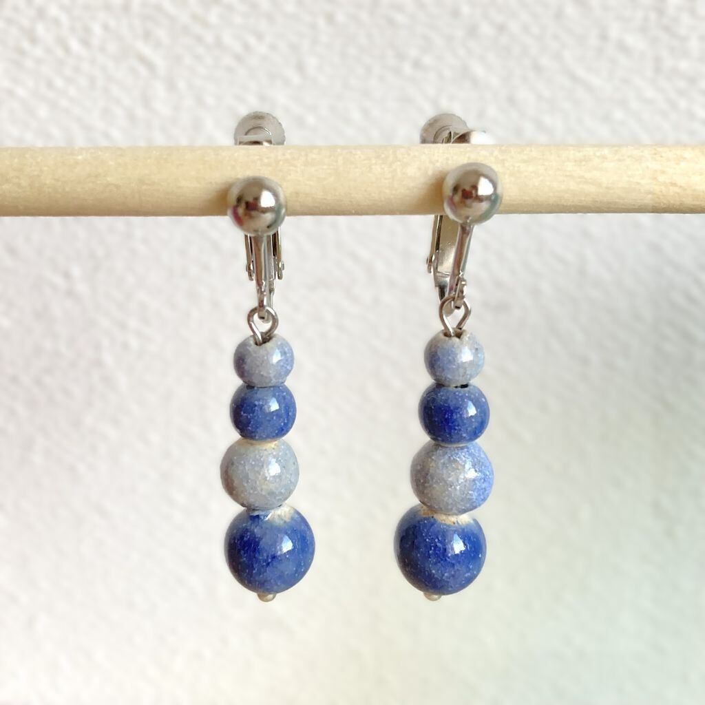 青と水色のコントラストが、まるで水滴が涼しげに連なっているよう。シンプルでありながら、存在感があり、カジュアルな日常のコーディネートから、特別なシーンまで幅広く活躍します。