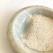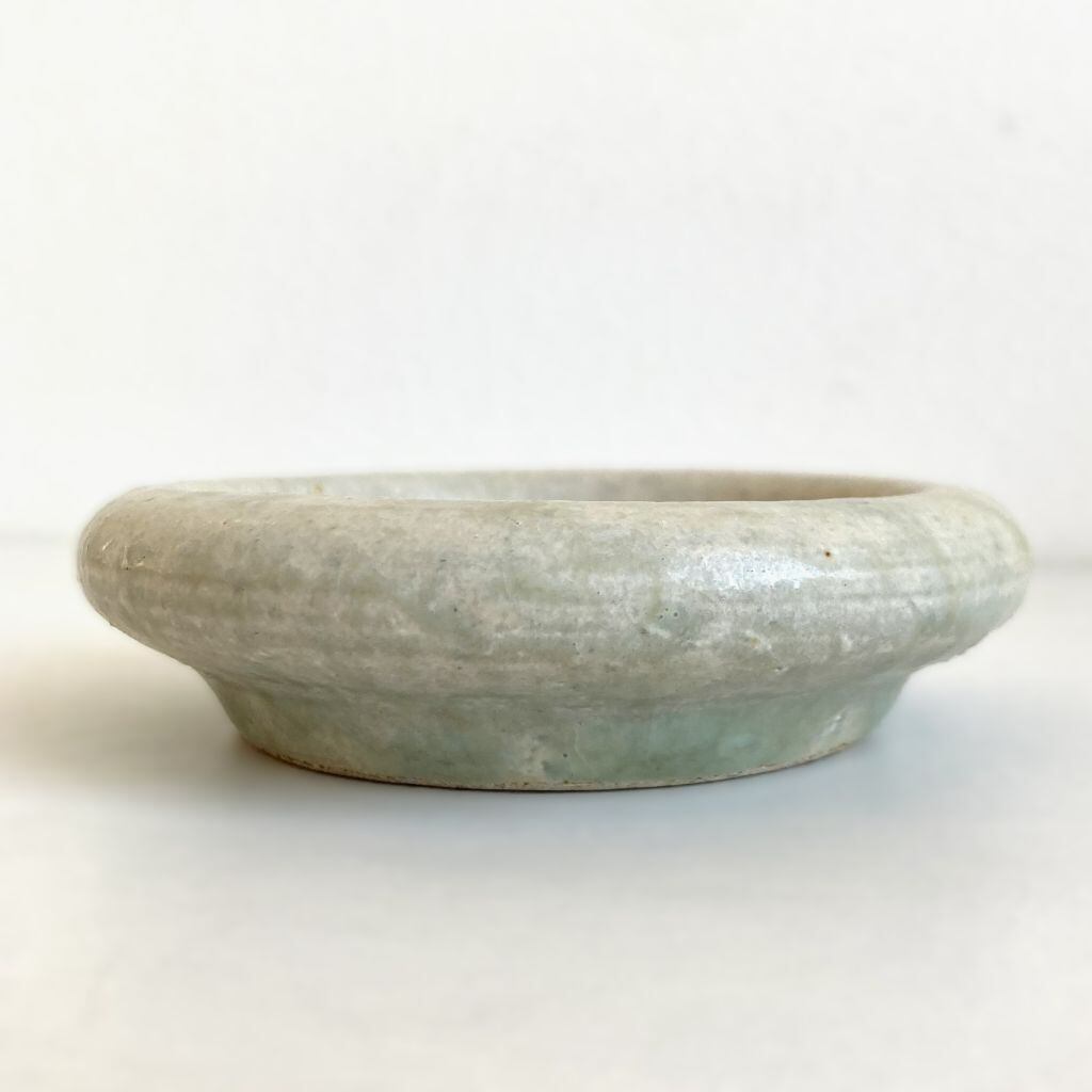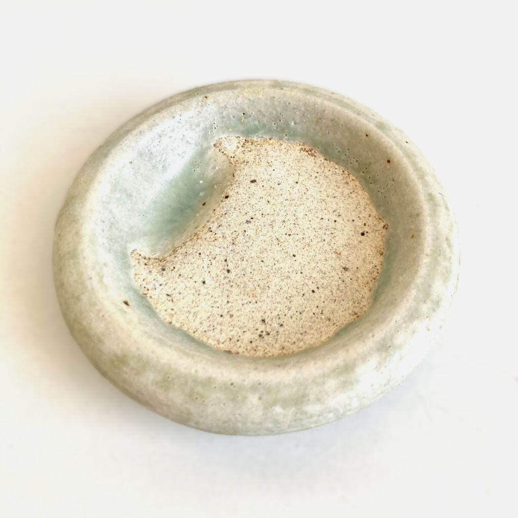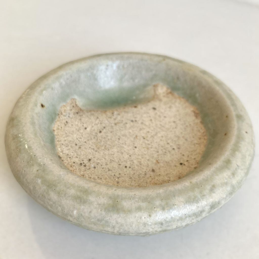 ころんとした小さな丸い陶器の硯です。