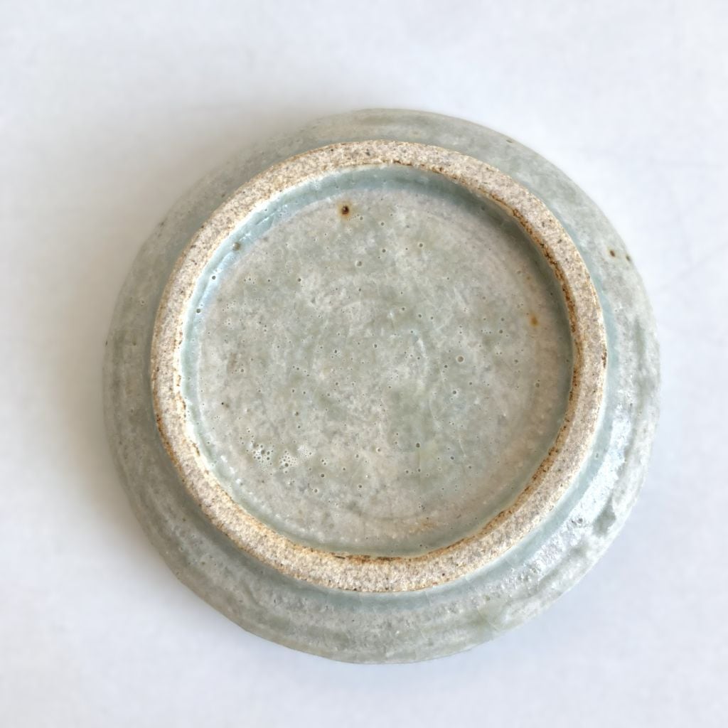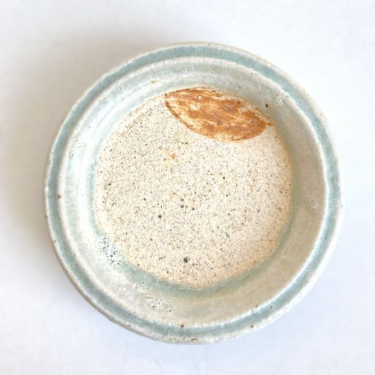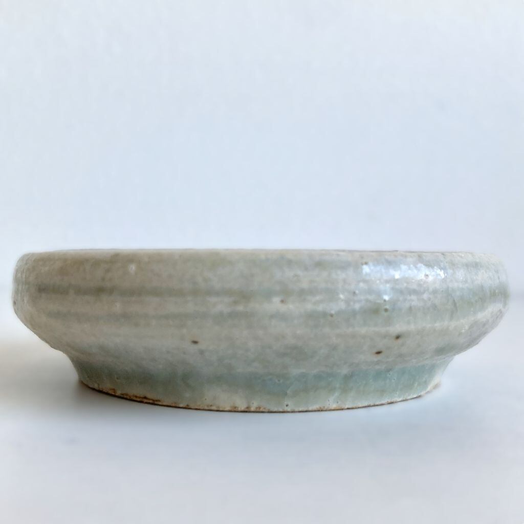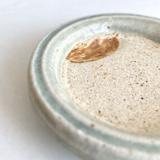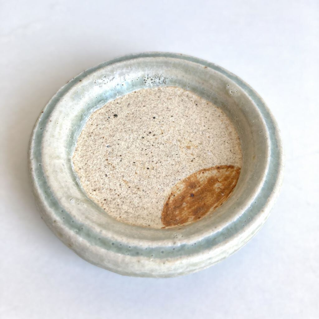 一本入った筋に、透明度のある淡い灰釉が、一際濃く浮かび上がっています。また、墨池の部分に錆色を乗せ、シンプルながらも遊び心あるデザインになっています。