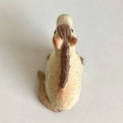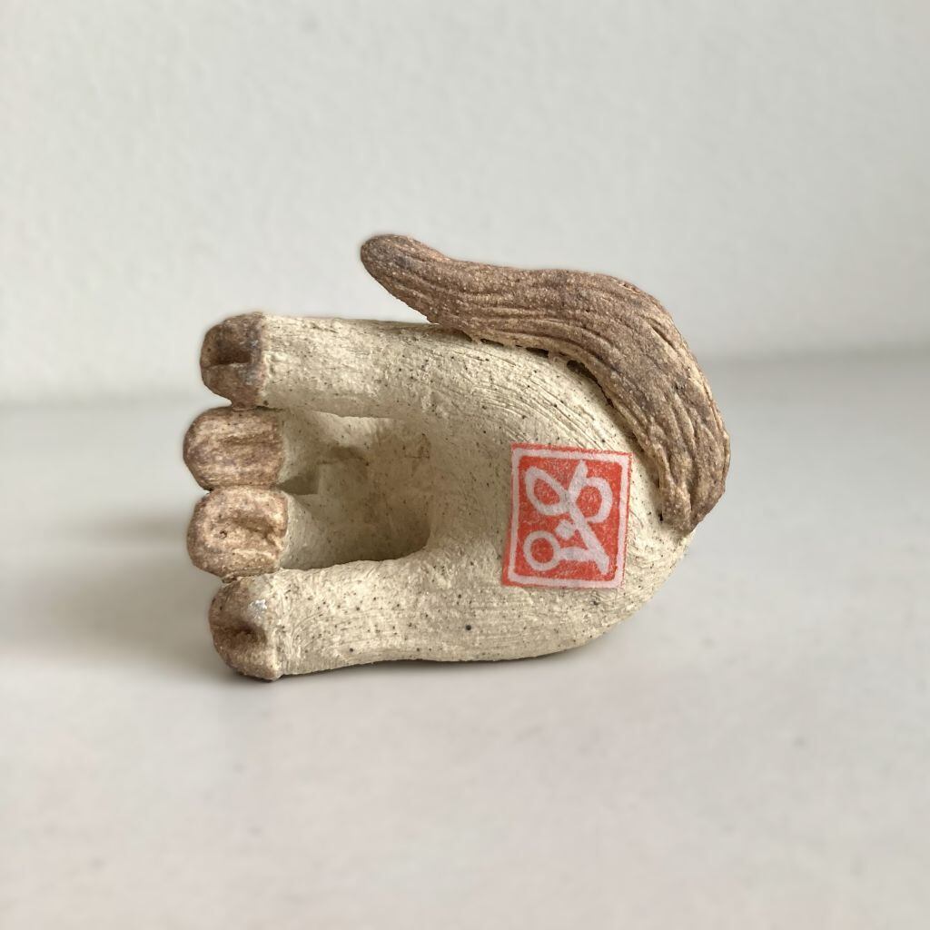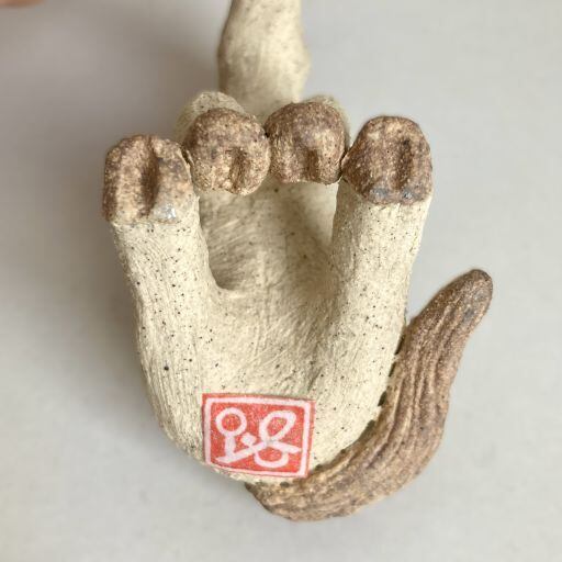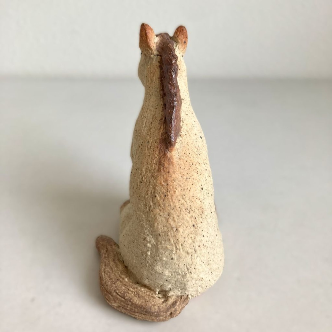 耳の先と背中のたてがみの下の赤みは、焼成時に灰が飛んで火色をつける緋襷によるものです。優しく柔らかな彩りになっています。