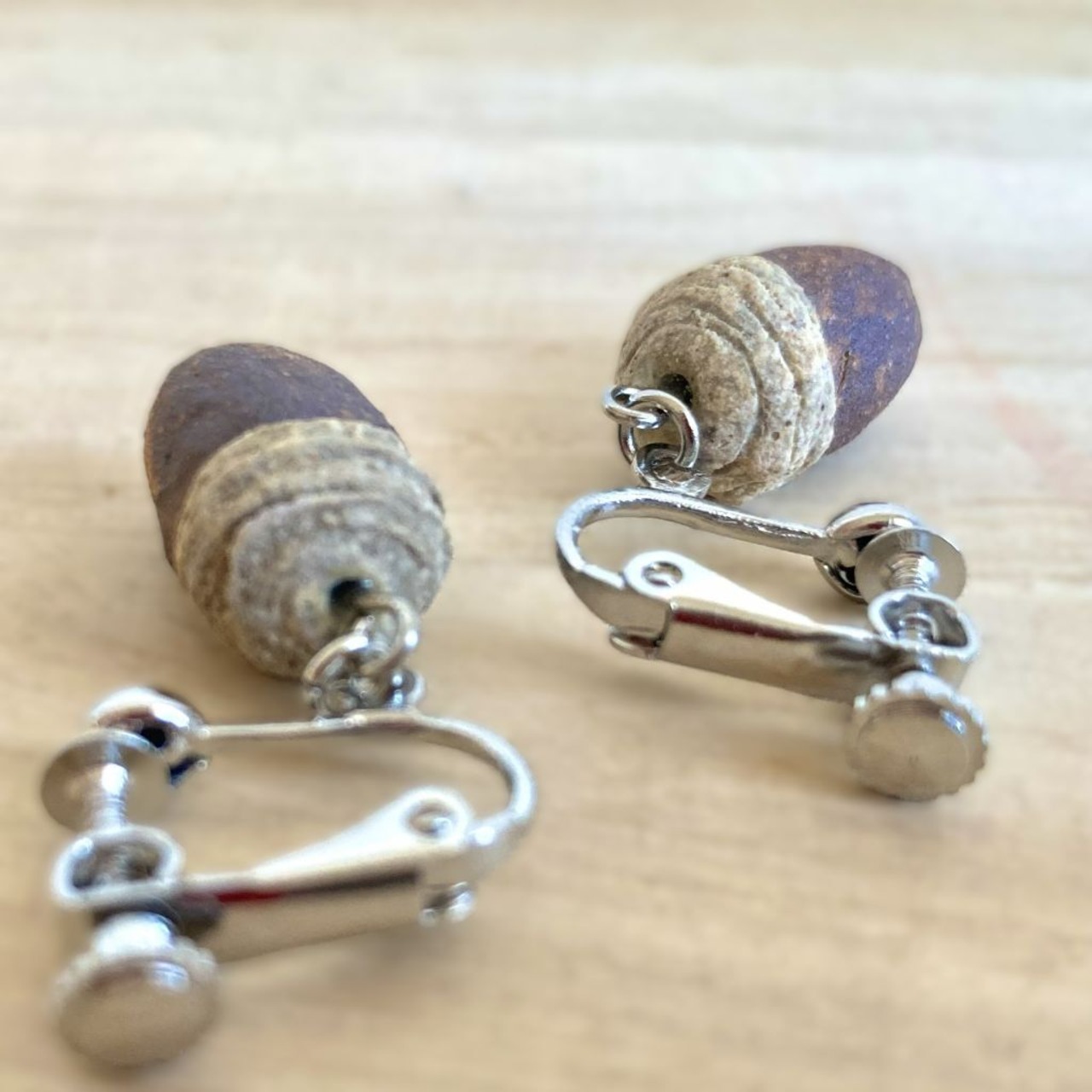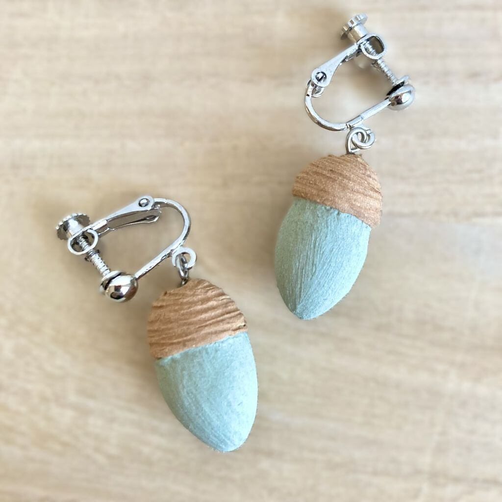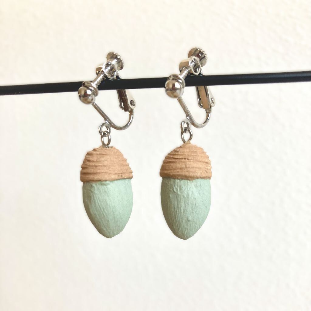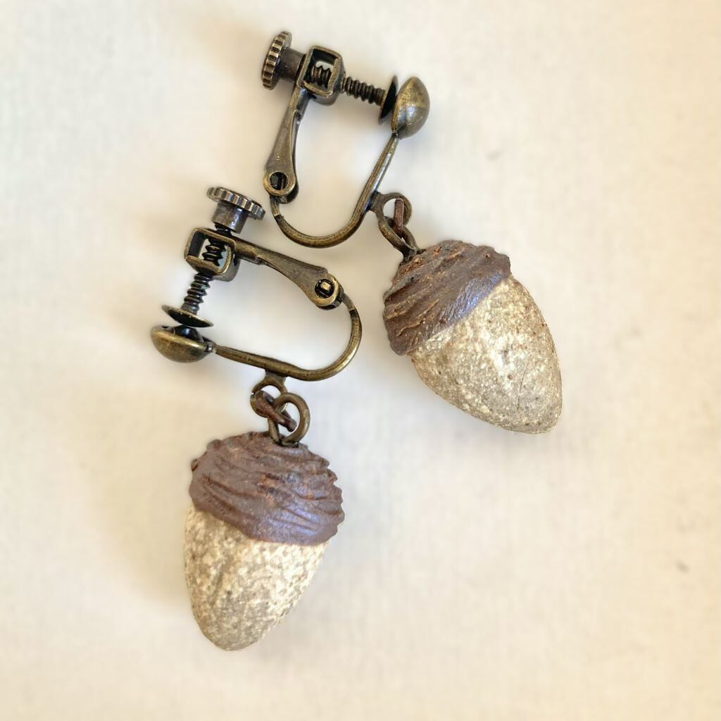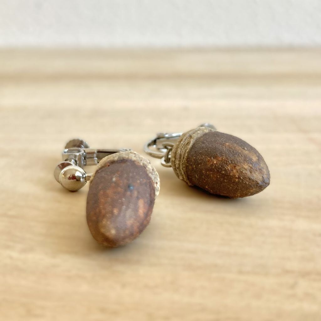 耳元でころころと転がるように揺れるどんぐりのイヤリングです。
