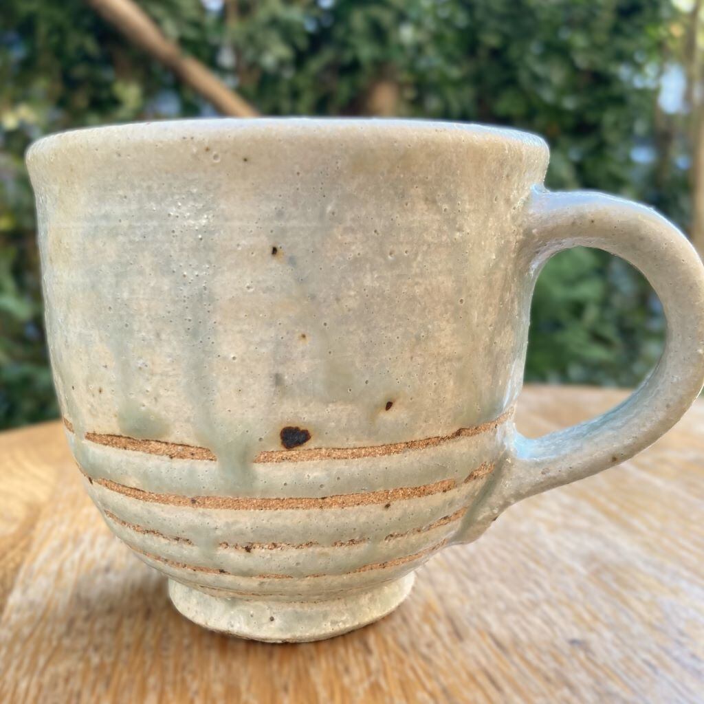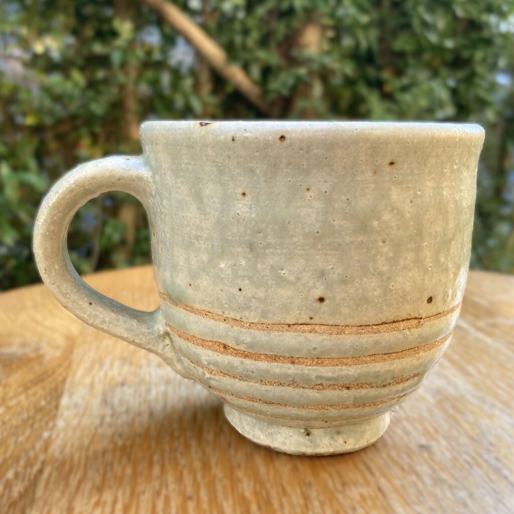 カップ下部を何重にも一回りする土のラインが特徴的で、手にするたびに優しい温もりを感じさせてくれる作品です。