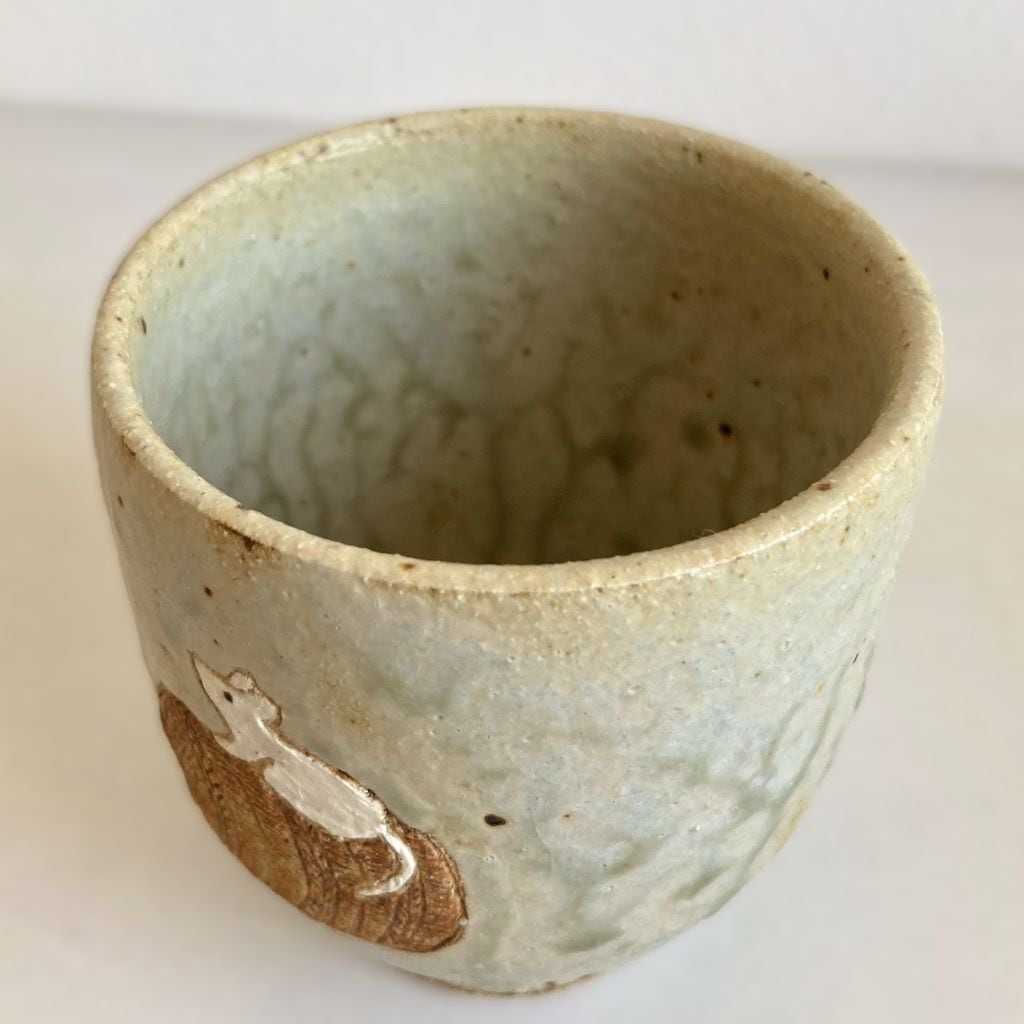 飲み口が細く、下に向かうにつれてゆっくりと細くなっています。高台にまで釉薬が施され、全体的に上品な仕上がりとなっています。