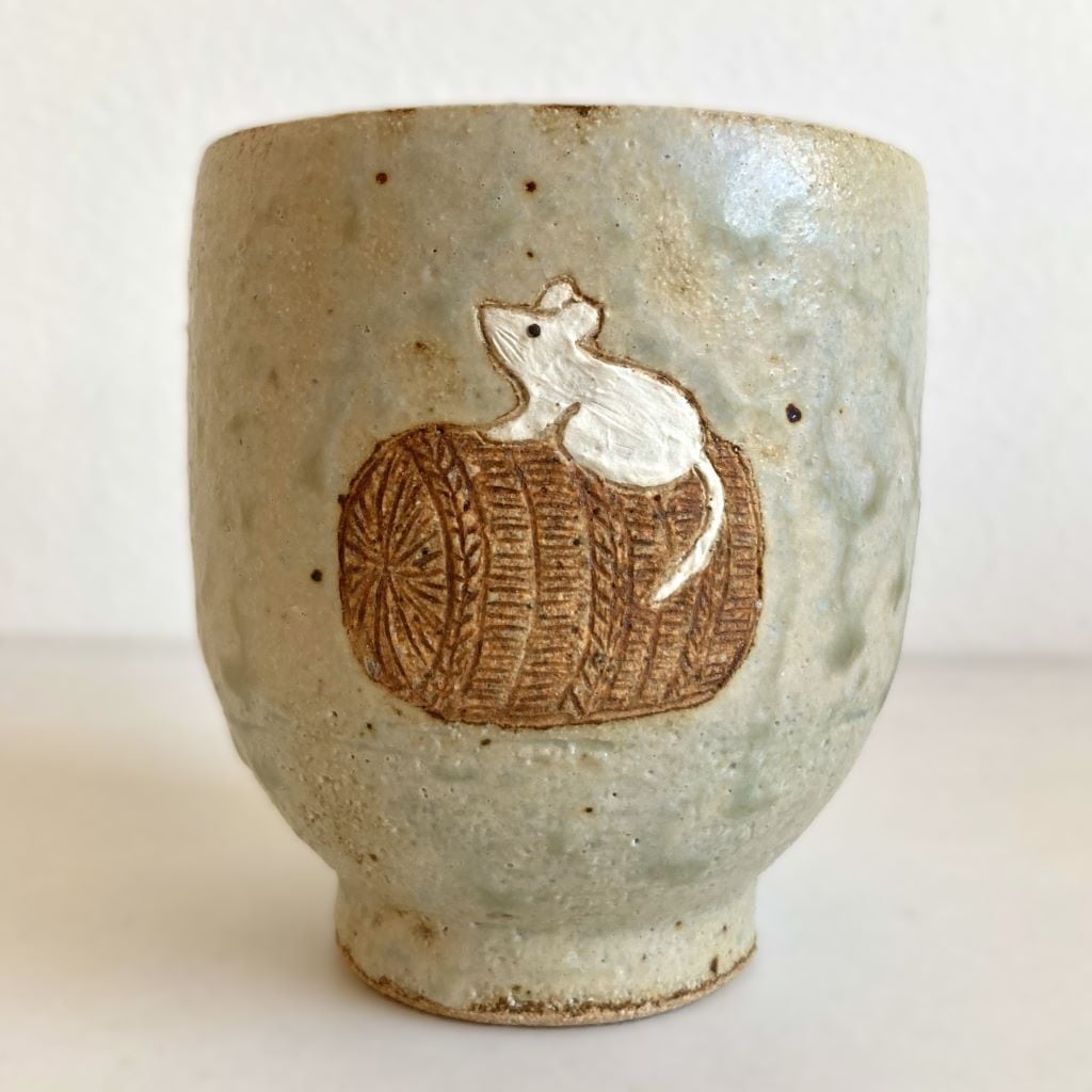 白ねずみが愛らしい湯呑です。