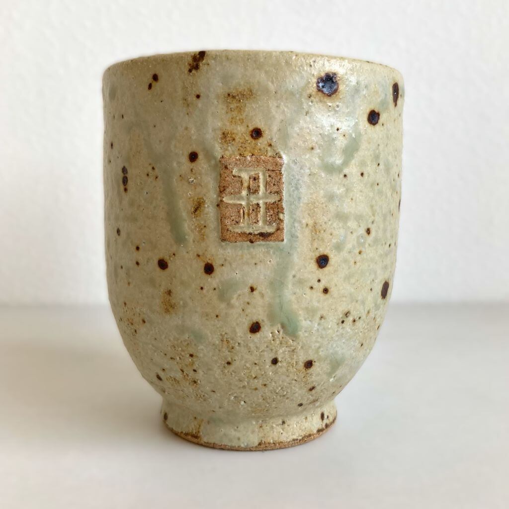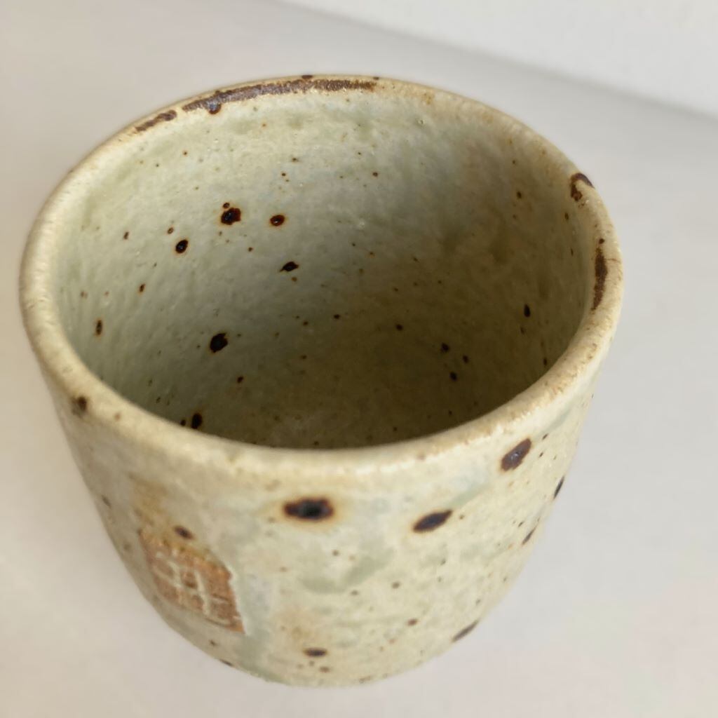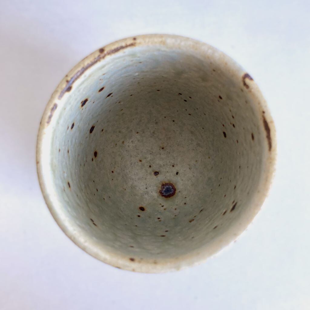 鉄粉が施されたこの湯呑は、深みのある釉薬とのコントラストが楽しく、お茶の時間を一層特別なものにしてくれます。細めの飲み口は口当たりが良く、膨らみの少ない形状と、高台まで覆った釉薬がスッキリとした印象を与えてくれます。