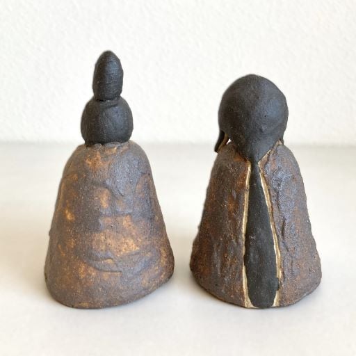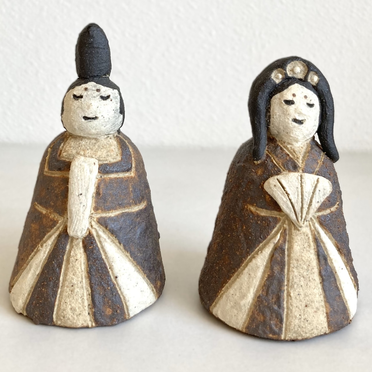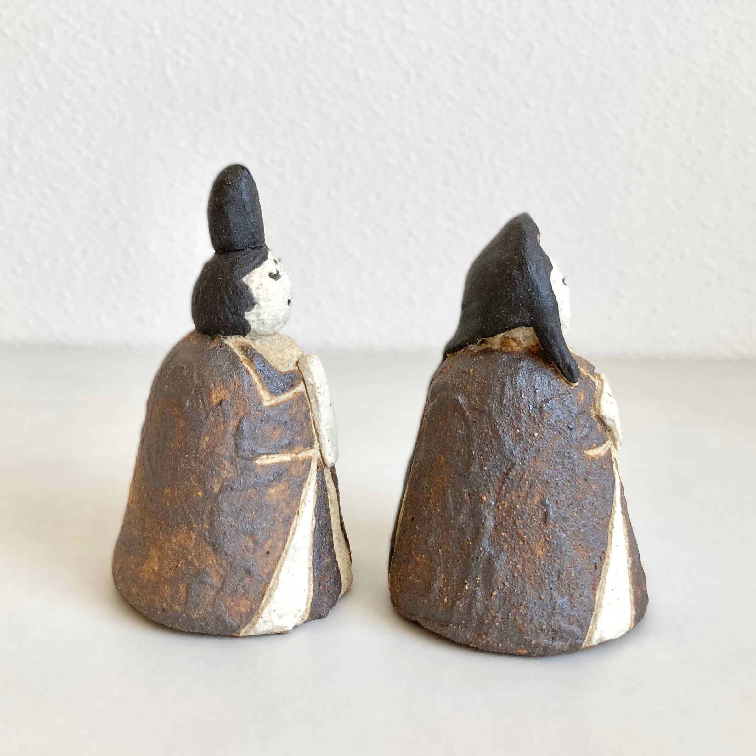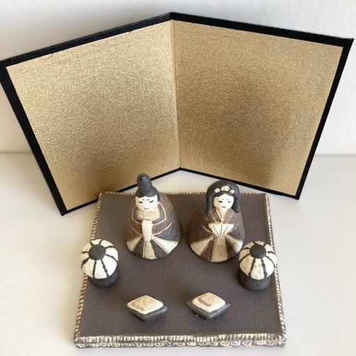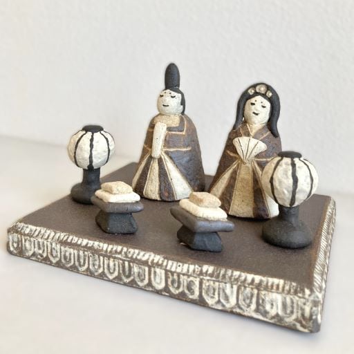 このひな人形は、自然な土の色合いが特徴です。色の違う土を上から一つ一つ指で貼り合わせることで、温かみのある立体感を出しています。